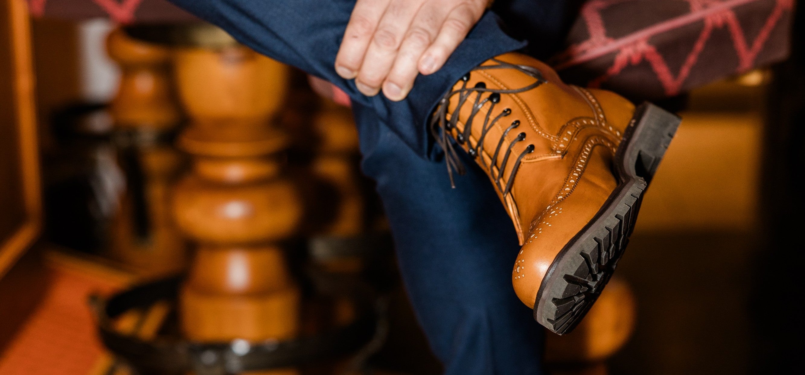 Mit der charakteristischen Naht an der Schuhspitze ist dieses Modell von den Stiefeln norwegischer Fischer inspiriert, die ihrerseits den Seehundfellstiefeln der Samen und Inuit nachempfunden sind.
